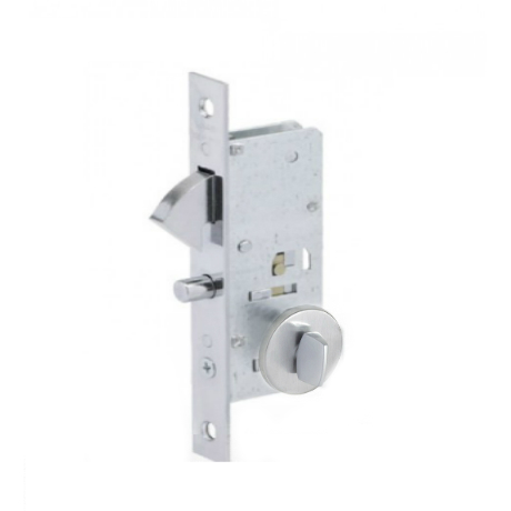 Fechadura tipo bico de papagaio para porta de correr, madeiras alumínio ou aço, com espessura de 25 a 40mm, com broca de 45mm.